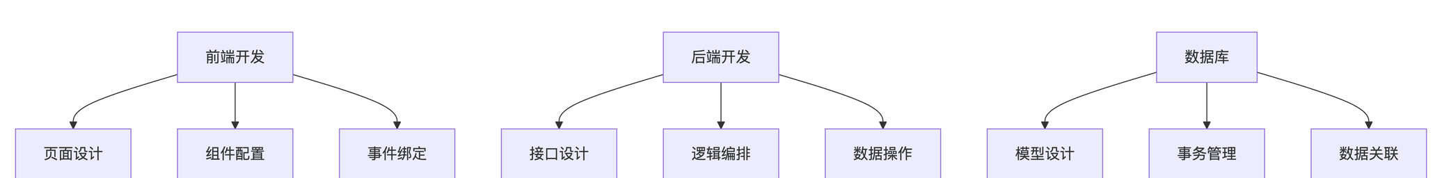 平台功能趋于全面,从简单的表单流程扩展到全栈开发能力(前端、后端、移动端)。