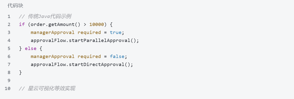 星云低代码复刻了Java语言的核心编程语义,通过可视化方式呈现: